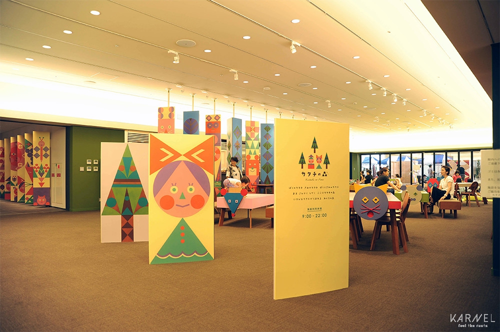 アートユニットtupera tuperaが内装をプロデュースした空間には、カフェ、授乳室、多目的トイレが設置されています。カレーやタコライスといったランチ(500円〜)、コーヒー、ジュースなどのソフトドリンク、ソフトクリームなどメニューも充実。ほか『カタチの森』をイメージした、△◯□のクッキーも販売されていましたよ。久留米の街を散策する際の拠点としてもおすすめです。